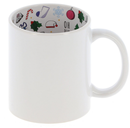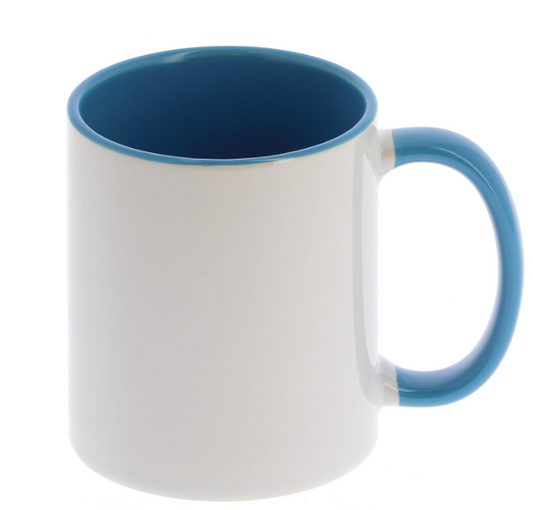 Mug céramique -Blanc/poignée et intérieur bleu clair