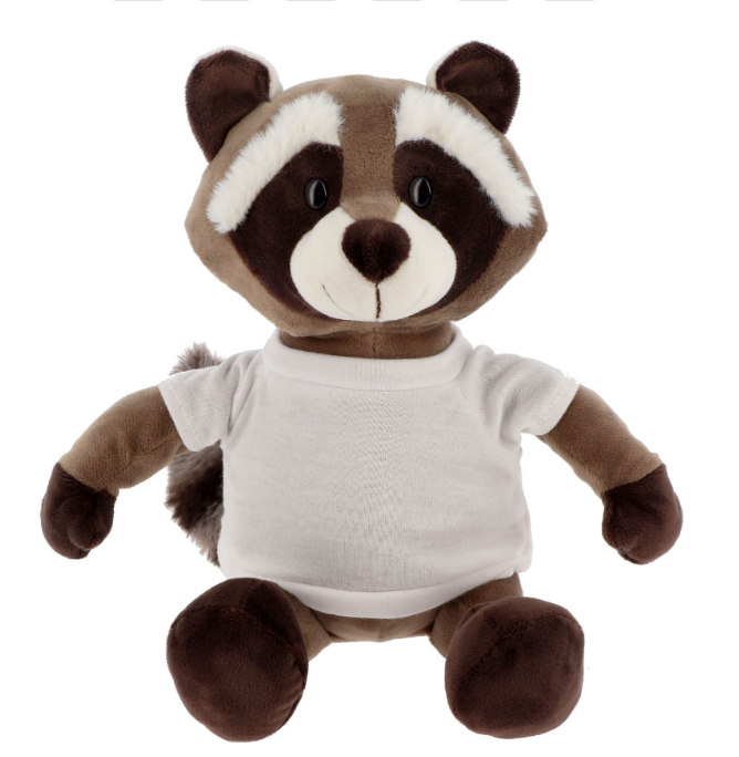 Peluche Raton-Laveur + T-shirt blanc - Hauteur 23cm