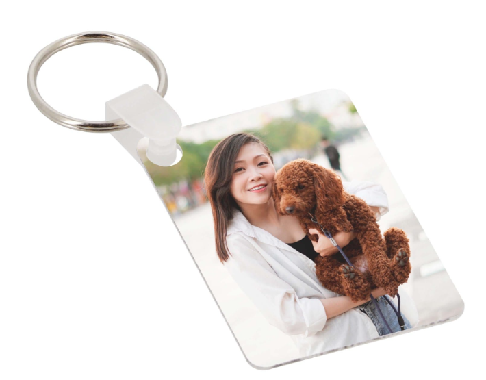 Ce porte-clefs en forme de rectangle est destiné à une personnalisation par sublimation thermique. Ses dimensions sont de 40,6 x 57,15 mm, et d’une épaisseur d’à peine 1,14 mm. Le porte-clefs peut-être personnalisé sur les deux côtés (recto verso) pour encore plus de créativité. Un anneau de métal assure un bon maintien des clefs.